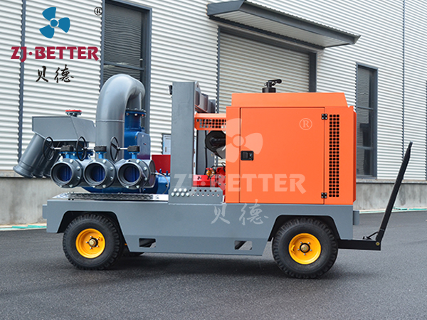 湖北荊州應(yīng)急局驗收貝德科技半架式四輪移動排澇泵車